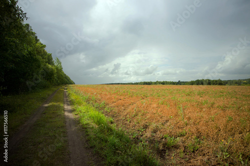 Fototapeta premium Field after harvesting grain on a cloudy day