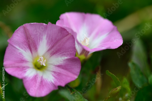 Fototapeta premium Field bindweed (Convolvulus arvensis). Pink and white flowers of this plant...