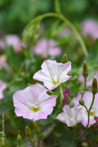 Fototapeta premium Field bindweed or Convolvulus arvensis or European bindweed or Creeping Jenny...