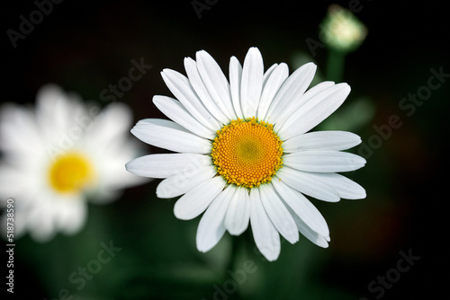© Sergey, Obraz premium Field chamomile close-up on a dark background. ethnoscience