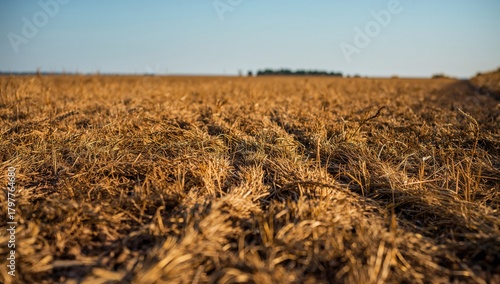 © AIArtistry, Fototapeta premium Field Featuring Stubble and Wheel Marks on the Ground, Seasonal Change