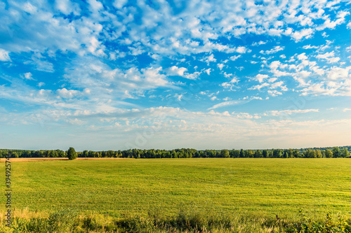 © VKS, Fototapeta premium Field, forest, arable land in the evening at sunset of a Sunny day in early autumn. Moscow Region, Russia