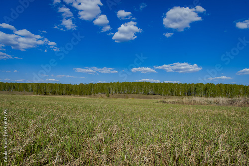 © Николай Моос, Fototapeta premium Field, green grass, forest in the distance