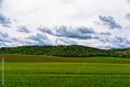 © Yaroshenko-Denys, Fototapeta premium Field, hill, wheat, clouds