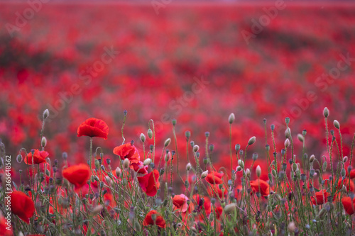 © Elena Krivorotova, Obraz premium Field of beautiful red bloming poppies.
