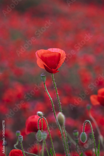 © Elena Krivorotova, Obraz premium Field of beautiful red bloming poppies.