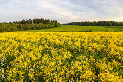 Fototapeta premium Field of blooming colza, also known as rapeseed (Brassica napus)