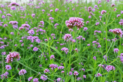 Fototapeta premium Field of Blossoming Verbena Bonariensis or Purpletop Vervain