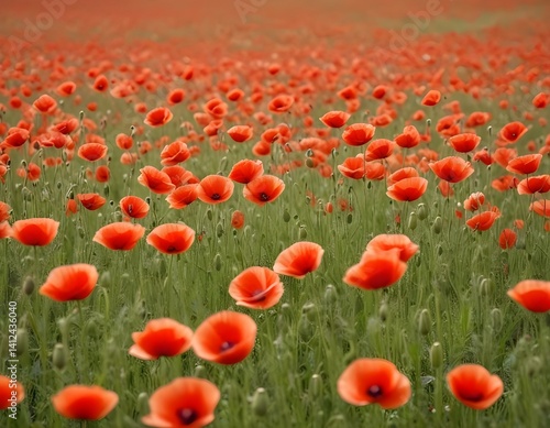 © Eyeam, Fototapeta premium Field of Corn Poppy Flowers Papaver rhoeas in Spring.