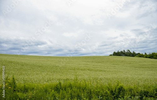 © gjeerawut, Obraz premium Field of flower potato with cloudy sky1