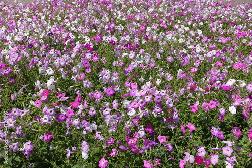 © Anna, Naklejka premium Field of flowering colorful petunias in July