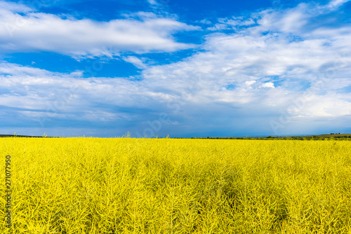 Obraz premium Field of Golden wheat under the blue sky and clouds