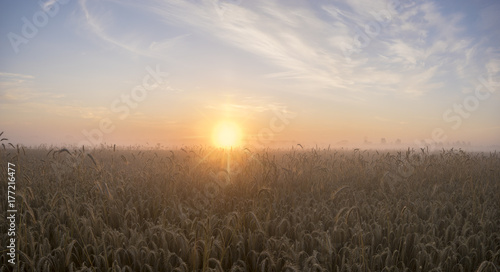 © Mike Mareen, Obraz premium field of grain during the magnificent misty sunrise