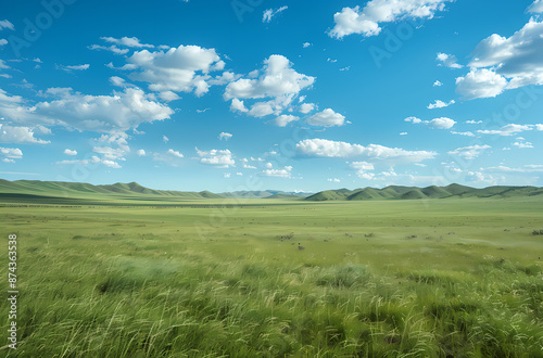 © Longo, Obraz premium field of grass and sky