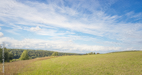 © Sergei, Fototapeta premium Field of grass with a blue sky in the background