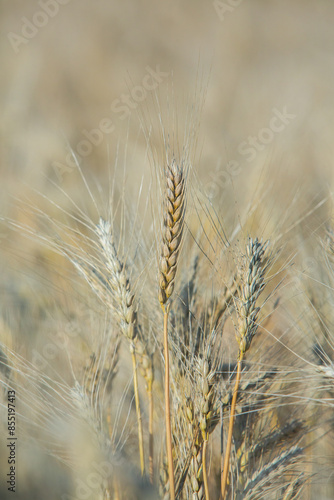 Fototapeta premium Field of lavender in the sunset light. Background with golden light. Purple...