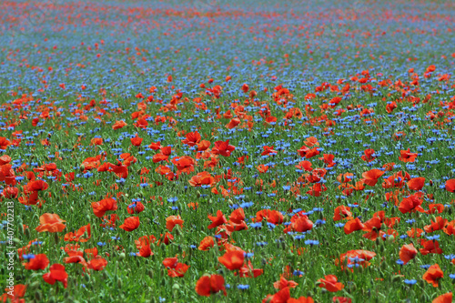 © Lana, Fototapeta premium field of poppies and cornflowers. natural texture