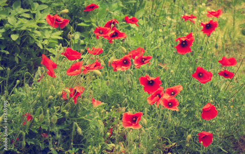 Obraz premium Field of red corn poppy flowers in summer