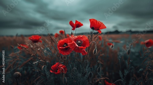 Obraz premium Field of red poppies and green wheat