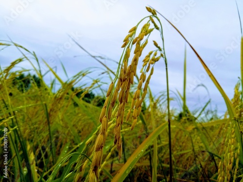 Fototapeta premium Field of rice. Golden rice grains