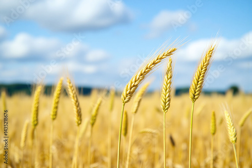 © Mingqing, Fototapeta premium field of ripe wheat with a blue sky in the background1