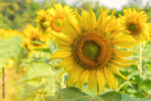 Fototapeta premium Field of Sunflower blooming in Sunflowers garden
