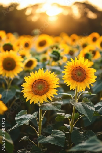 Obraz premium Field of Sunflowers at Sunset