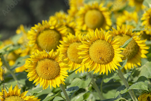 Fototapeta premium Field of sunflowers. Summer landscape. Yellow flowers.