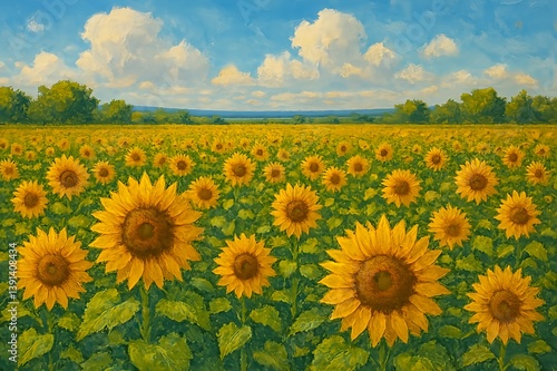 Fototapeta premium Field of Sunflowers under a Blue Sky