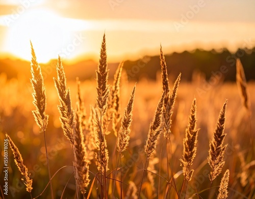 © Nobody, Fototapeta premium Field of tall grass in golden hour