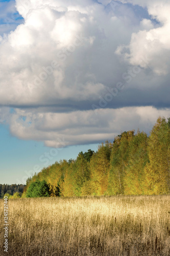 © Sergei, Obraz premium Field of tall grass with a cloudy sky in the background