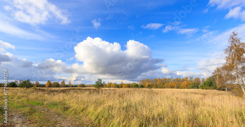© Sergei, Obraz premium Field of tall grass with a cloudy sky in the background