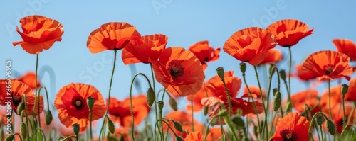 © iVGraphic, Obraz premium Field of vibrant red poppies under a clear blue sky