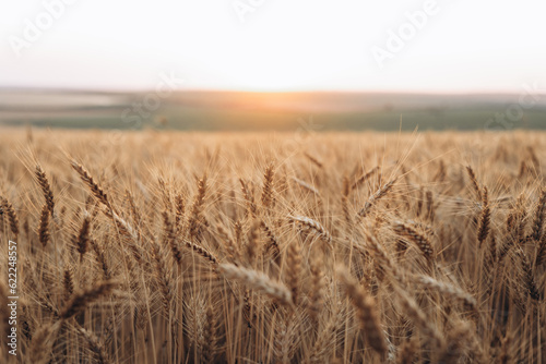 © sorin, Obraz premium field of wheat in summer, golden wheat field at sunset.