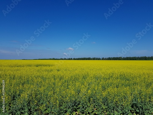© kos1976, Obraz premium Field of yellow flowers under blue sky