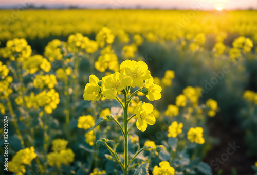 © RUMA, Fototapeta premium Field of yellow rapeseed flowers during a breathtaking spring sunrise