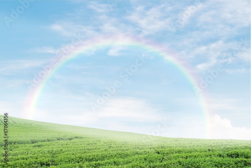 © rakop_ton, Fototapeta premium field on a background of the blue sky with rainbow