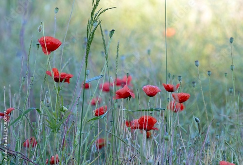 © Prajzner, Obraz premium Field overgrown with wild poppy with red flowers