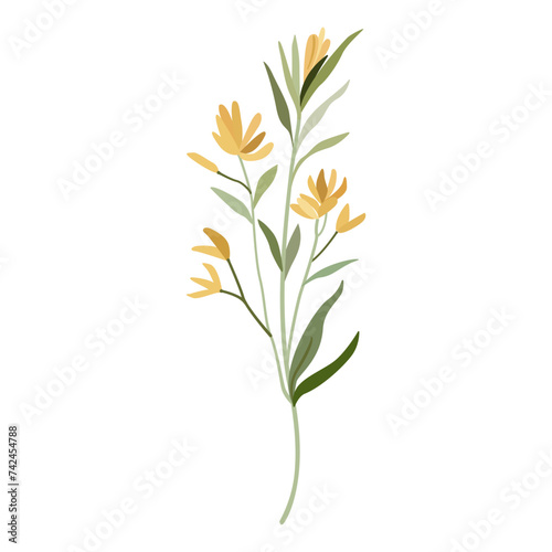 © Olena, Fototapeta premium Field plant. Delicate blooming yellow wildflower. Garden, meadow, field botanic floral element. Vector illustration isolated on white background