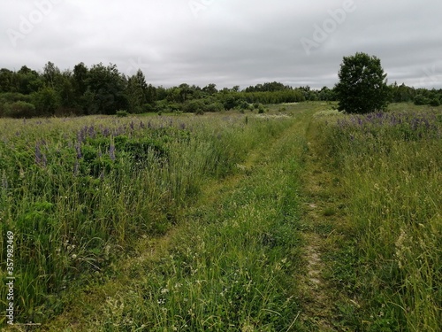 Fototapeta premium field road village nature park