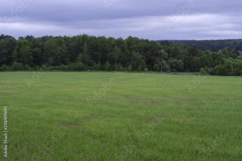 © Dmitry Vereshchagin, Obraz premium Field, trees and the cloudy sky