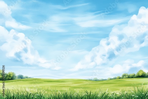 © Space Priest, Obraz premium Field with a blue sky and clouds