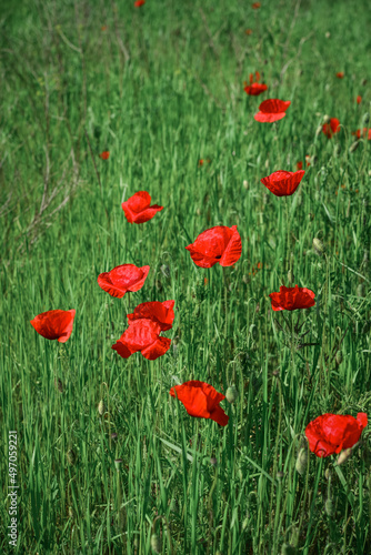 Fototapeta premium Field with blooming Poppy Flowers