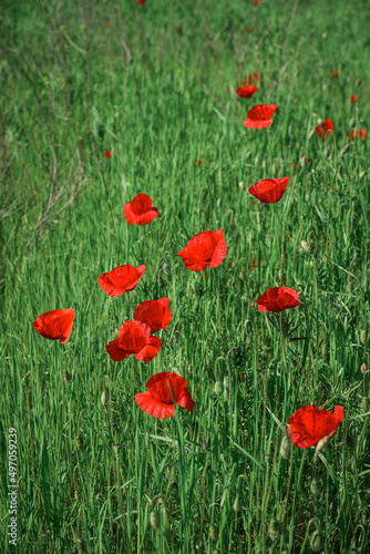 Fototapeta premium Field with blooming Poppy Flowers
