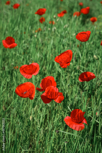 Fototapeta premium Field with blooming Poppy Flowers