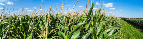 Fototapeta premium field with corn stalks on a summer day. Panorama