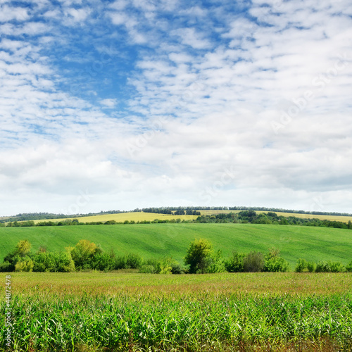 © alinamd, Obraz premium field with green plants and cloudy sky