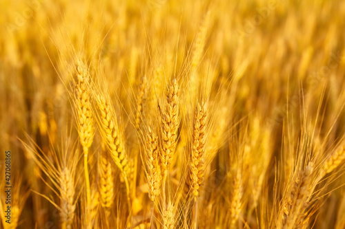 Fototapeta premium field with spikelets close up, background with wheat spikelets