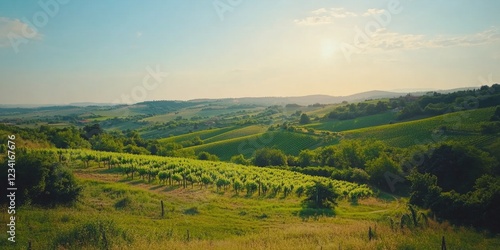 © Goncharenko, Naklejka premium Field with Trees and Hills