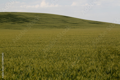 Fototapeta premium Field with wheat near hills